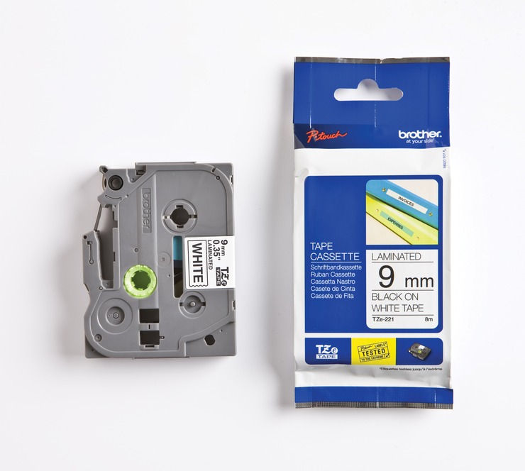Brother Schriftbandkassette TZE221, laminiert, 8 m x 9 mm, schwarz / weiß