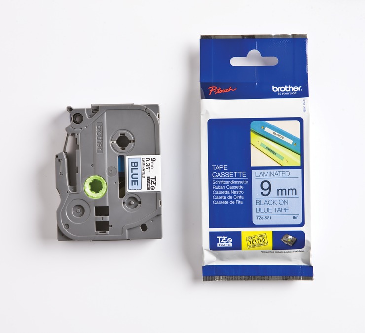 Brother Schriftbandkassette TZE521, laminiert, 8 m x 9 mm, schwarz / blau
