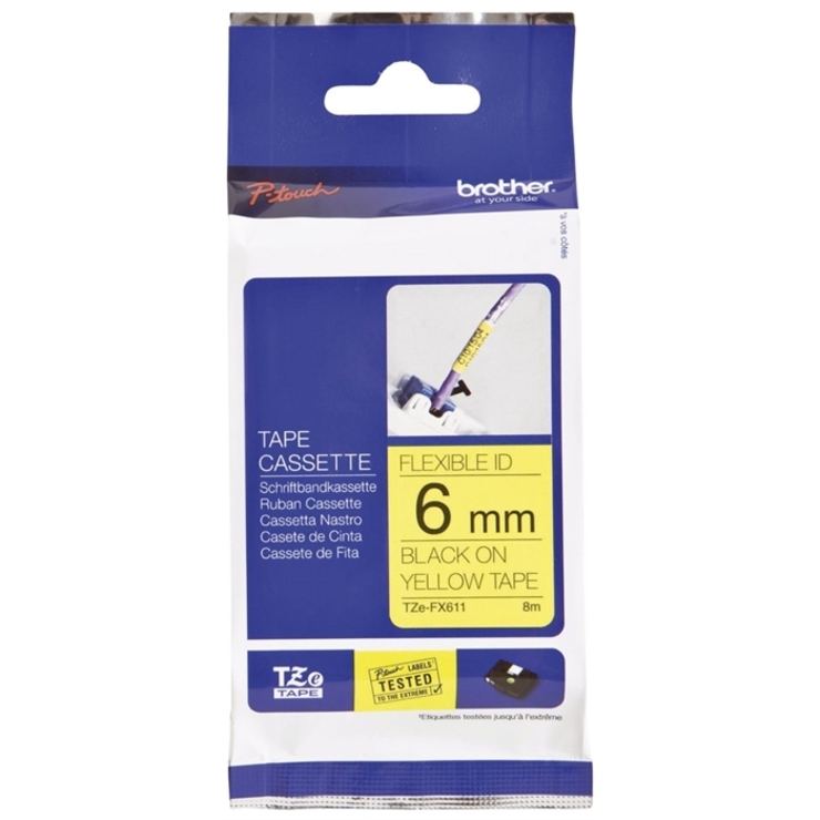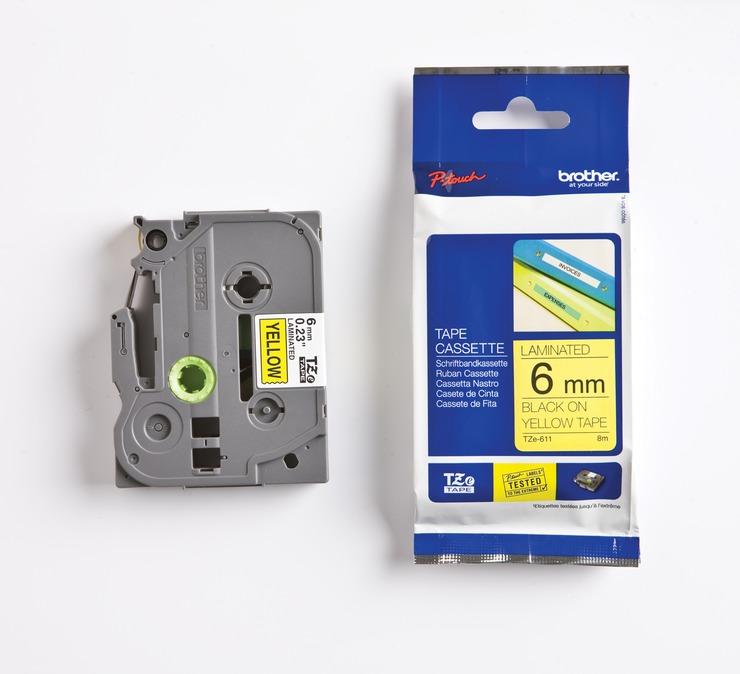 Brother Schriftbandkassette TZE611, laminiert, 8 m x 6 mm, schwarz / gelb
