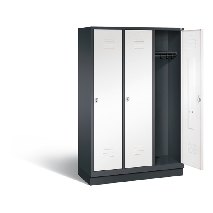 Stahl-Z-Garderobenschrank Classic, 2 Abteile jeweils z-förmig unterteilt für 4 Personen, komfortable Hängemöglichkeit langer Kleidungsstücke trotz geringem Platzangebot, Z-Türen mit speziellem Faltmechanismus und Anschlagsdämpfer, doppelwandig für hohe Stabilität, Türaufhängung durchgängig mit robustem Drehstangen-Scharnier, innen je Fach 1 stabile Garderobenstange aus Ovalprofil mit 3 verdrehsicheren Schiebehaken, mit Belüftungs-Lochbild in der Rückwand und 10 mm Wandabstandhalter,... (mehr)? Papersmart hilft Ihnen, den besten Anbieter für Ihren gesamten Warenkorb zu ermitteln.
