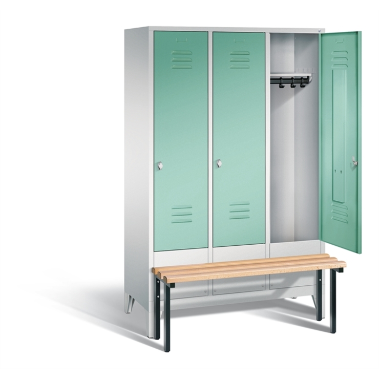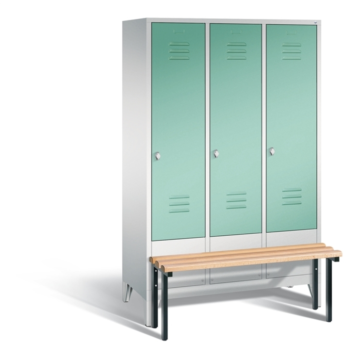 Stahl-Schließfachschrank Intro, 3 Abteile mit 3 Fächern, Abteilbreite 300 mm, Korpus aus stabiler Stahlkonstruktion mit hochwertiger Einbrennbeschichtung für hohe UV- und Korrosionsbeständigkeit, Türen verstärkt für hohe Stabilität, mit Anschlagsdämpfer, Türaufhängung durchgängig mit robustem Scharnierband, rechts angeschlagen, Rückwand mit großflächigem Luftdurchlass und 18 mm Wandabstandshaltern, auf 100 mm hohem Sockel, 9 Zylinderschlösser mit je 2 Schlüsseln, Schließkreis bis 1000... (mehr)? Papersmart hilft Ihnen, den besten Anbieter für Ihren gesamten Warenkorb zu ermitteln.