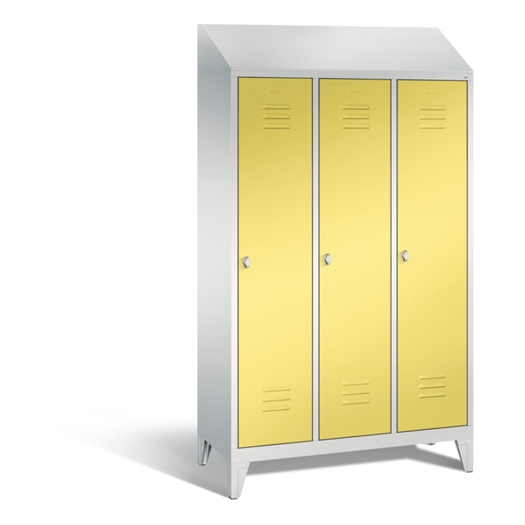 Stahl-Fächerschrank Classic, 3 Abteile mit 5 Fächern, Abteilbreite 300 mm, Korpus aus stabiler Stahlkonstruktion mit hochwertiger Einbrennbeschichtung für hohe UV- und Korrosionsbeständigkeit, auf 100 mm hohem Sockel, mit Kunststoffgleitern als praktischer Schrank- und Fußbodenschutz, vorne zurückgesetzt, 15 3-Riegel Verschluß mit Schließstangen für höhere Einbruchsicherheit Türen mit Anschlagsdämpfer, Türaufhängung in Drehbolzen, 1 Schrägdachaufsatz mit 26 Grad Neigung, verhindert das... (mehr)? Papersmart hilft Ihnen, den besten Anbieter für Ihren gesamten Warenkorb zu ermitteln.