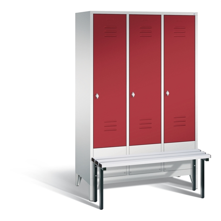 Stahl-Garderobenschrank Classic, 3 Abteile mit 3 Fächern, Abteilbreite 400 mm, Korpus aus stabiler Stahlkonstruktion mit hochwertiger Einbrennbeschichtung für hohe UV- und Korrosionsbeständigkeit, auf 150 mm hohen Füßen aus Kunststoff für erweiterten Korrosionsschutz, 9 Zylinderschlösser mit je 2 Schlüsseln, Schließkreis bis 1000 verschiedene Schließungen, Türen mit Anschlagsdämpfer, Türaufhängung in Drehbolzen, Maße (H x B x T): 1850 x 1200 x 500 mm, Korpus: RAL 7035 Lichtgrau, Türen... (mehr)? Papersmart hilft Ihnen, den besten Anbieter für Ihren gesamten Warenkorb zu ermitteln.