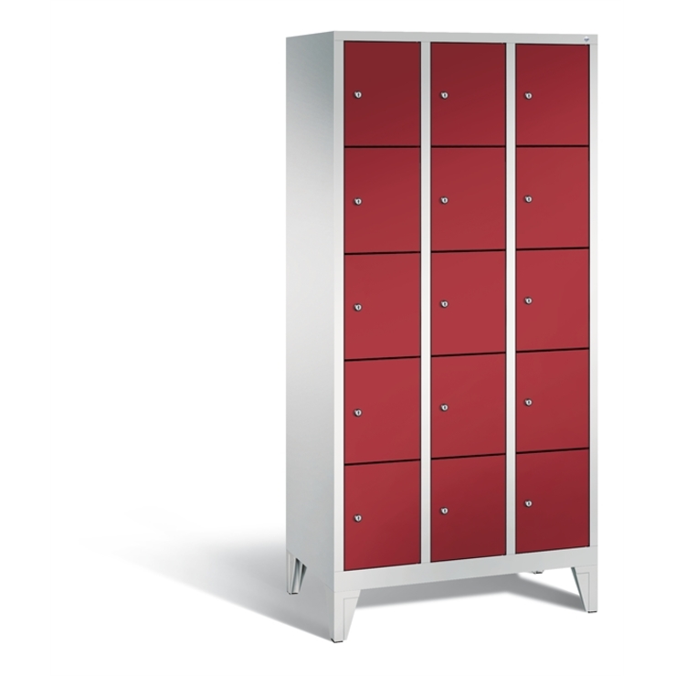 Doppelstöckiger Stahl-Garderobenschrank Evolo, 3 Abteile mit je 2 Fächern, Abteilbreite 400 mm, Korpus aus stabiler Stahlkonstruktion mit hochwertiger Einbrennbeschichtung für hohe UV- und Korrosionsbeständigkeit, innen je Fach 1 stabile Garderobenstange aus Ovalprofil mit 3 verdrehsicheren Schiebehaken, auf 100 mm hohem Sockel, mit Kunststoffgleitern als praktischer Schrank- und Fußbodenschutz, vorne zurückgesetzt, 6 Ergonomische Sicherheits-Drehriegel für Vorhängeschlösser inkl.... (mehr)? Papersmart hilft Ihnen, den besten Anbieter für Ihren gesamten Warenkorb zu ermitteln.