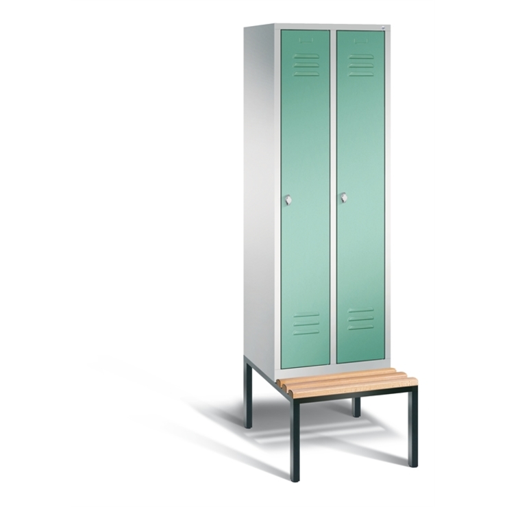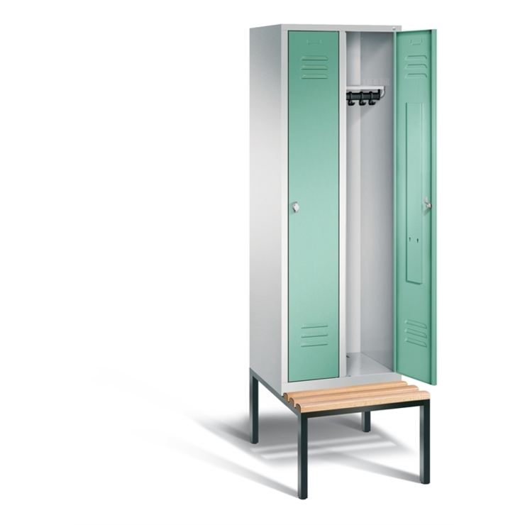 Doppelstöckiger Stahl-Garderobenschrank Evolo, 4 Abteile mit je 2 Fächern, Abteilbreite 400 mm, Korpus aus stabiler Stahlkonstruktion mit hochwertiger Einbrennbeschichtung für hohe UV- und Korrosionsbeständigkeit, innen je Fach 1 Ablageboden, darunter 1 stabile Garderobenstange aus Ovalprofil mit 3 verdrehsicheren Schiebehaken, auf untergebauter Sitzbank, Gestell aus stabilem Vierkant-Stahlrohr 30 x 30 mm, mit verstellbaren Bodengleitern für einfachen Niveauausgleich, 8 Ergonomische... (mehr)? Papersmart hilft Ihnen, den besten Anbieter für Ihren gesamten Warenkorb zu ermitteln.