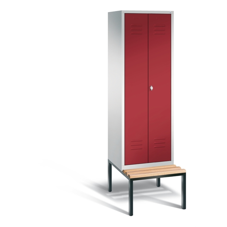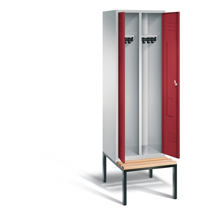 Stahl-Garderobenschrank Classic, auf untergebauter Sitzbank, Gestell aus stabilem Vierkant-Stahlrohr 30 x 30 mm, mit verstellbaren Bodengleitern für einfachen Niveauausgleich, 1 Abteil, Abteilbreite 400 mm, z-förmig unterteilt für 2 Personen, Korpus aus stabiler Stahlkonstruktion mit hochwertiger Einbrennbeschichtung für hohe UV- und Korrosionsbeständigkeit, innen komfortable Hängemöglichkeit langer Kleidungsstücke trotz geringem Platzangebot, je Fach 1 stabile Garderobenstange aus... (mehr)? Papersmart hilft Ihnen, den besten Anbieter für Ihren gesamten Warenkorb zu ermitteln.