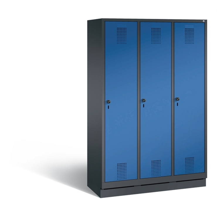 Stahl-Garderobenschrank Evolo, 2 Abteile, Abteilbreite 300 mm, Korpus aus stabiler Stahlkonstruktion mit hochwertiger Einbrennbeschichtung für hohe UV- und Korrosionsbeständigkeit, innen je Abteil 1 Ablageboden, darunter 1 stabile Garderobenstange aus Ovalprofil mit 3 verdrehsicheren Schiebehaken, Schrankboden hinten mit großflächigem Luftdurchlass für optimale Luftzirkulation, auf 100 mm hohem Sockel, mit Kunststoffgleitern als praktischer Schrank- und Fußbodenschutz, vorne... (mehr)? Papersmart hilft Ihnen, den besten Anbieter für Ihren gesamten Warenkorb zu ermitteln.