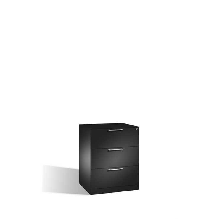 Stahl-Schubladenschrank Asisto, als Hängeregistraturschrank, Korpus aus stabiler Stahlkonstruktion, körperschallgedämpft für angenehmes Geräuschverhalten, mit filigraner Kantenoptik und hochwertiger Einbrennbeschichtung für hohe UV- Beständigkeit, mit integrierter Niveauregulierung von innen bedienbar, 3 voll ausziehbare Schubladen, 1-bahnig, für Hängehefter DIN A4 quer, 1 Wechselzylinder matt vernickelt mit 2 Schlüsseln, 3 Ergonomische Design-Bügelgriffe für einfache Bedienung, aus... (mehr)? Papersmart hilft Ihnen, den besten Anbieter für Ihren gesamten Warenkorb zu ermitteln.