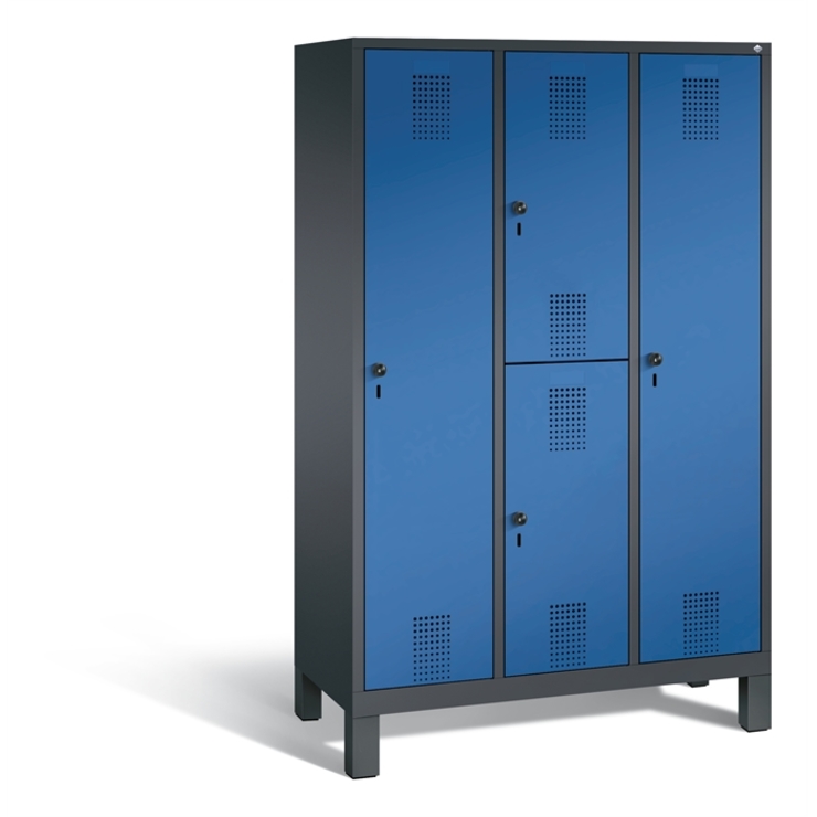 Doppelstöckiger Stahl-Garderobenschrank Evolo, 1 Abteil mit 2 Fächern, Abteilbreite 400 mm, Korpus aus stabiler Stahlkonstruktion mit hochwertiger Einbrennbeschichtung für hohe UV- und Korrosionsbeständigkeit, innen je Fach 1 stabile Garderobenstange aus Ovalprofil mit 3 verdrehsicheren Schiebehaken, auf 100 mm hohem Sockel, mit Kunststoffgleitern als praktischer Schrank- und Fußbodenschutz, vorne zurückgesetzt, 2 Ergonomische Sicherheits-Drehriegel für Vorhängeschlösser inkl.... (mehr)? Papersmart hilft Ihnen, den besten Anbieter für Ihren gesamten Warenkorb zu ermitteln.