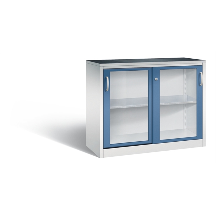 Stahl-Schiebetürenschrank Asisto, Korpus aus stabiler Stahlkonstruktion mit filigraner Kantenoptik und hochwertiger Einbrennbeschichtung für hohe UV-Beständigkeit, mit integrierter Niveauregulierung, bequem von innen bedienbar, hohe Flexibilität der Inneneinrichtung durch Höhenverstellbarkeit im 15 mm Raster, 1 Wechselzylinder matt vernickelt mit 2 Schlüsseln, 2 Ergonomische Design-Bügelgriffe für einfache Bedienung, aus Metall, matt vernickelt, 2 Stahltüren doppelwandig, gedämmt für... (mehr)? Papersmart hilft Ihnen, den besten Anbieter für Ihren gesamten Warenkorb zu ermitteln.