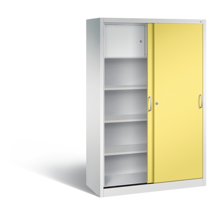 Stahl-Schiebetürenschrank Acurado-2000, Korpus aus stabiler Stahlkonstruktion mit hochwertiger Einbrennbeschichtung für hohe UV-Beständigkeit, mit Kunststoffgleitern als praktischer Schrank- und Fußbodenschutz, hohe Flexibilität der Inneneinrichtung durch Höhenverstellbarkeit im 15 mm Raster, Türen verstärkt für hohe Stabilität, leichtgängige Bedienung durch Leichtlaufrollen in spezieller Schienenführung, 1 Wechselzylinder matt vernickelt mit 2 Schlüsseln, 2 Ergonomische Bügelgriffe... (mehr)? Papersmart hilft Ihnen, den besten Anbieter für Ihren gesamten Warenkorb zu ermitteln.