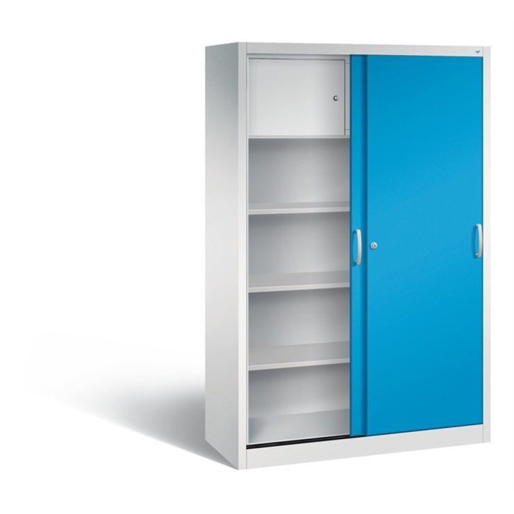 Stahl-Schiebetürenschrank Acurado-2000, als Aufsatzschrank, Korpus aus stabiler Stahlkonstruktion mit hochwertiger Einbrennbeschichtung für hohe UV-Beständigkeit, mit Kunststoffgleitern als praktischer Schrank- und Fußbodenschutz, hohe Flexibilität der Inneneinrichtung durch Höhenverstellbarkeit im 15 mm Raster, Türen verstärkt für hohe Stabilität, leichtgängige Bedienung durch Leichtlaufrollen in spezieller Schienenführung, 1 Wechselzylinder matt vernickelt mit 2 Schlüsseln, 2... (mehr)? Papersmart hilft Ihnen, den besten Anbieter für Ihren gesamten Warenkorb zu ermitteln.