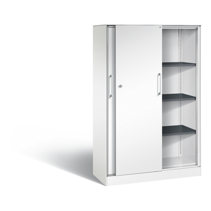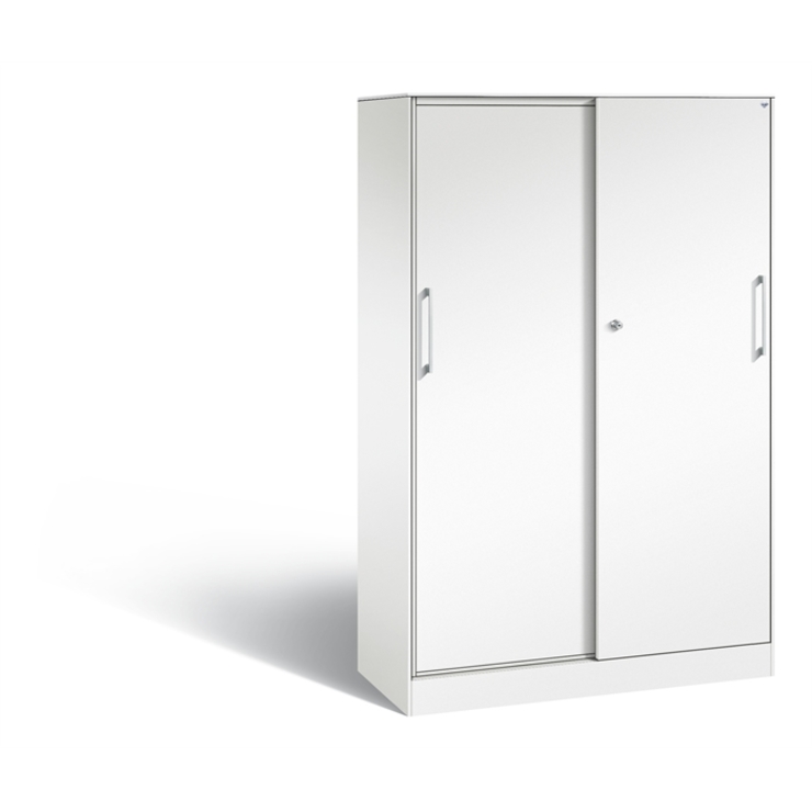 Stahl-Schiebetürenschrank Acurado-2000, Korpus aus stabiler Stahlkonstruktion mit hochwertiger Einbrennbeschichtung für hohe UV-Beständigkeit, mit Kunststoffgleitern als praktischer Schrank- und Fußbodenschutz, hohe Flexibilität der Inneneinrichtung durch Höhenverstellbarkeit im 15 mm Raster, Türen verstärkt für hohe Stabilität, leichtgängige Bedienung durch Leichtlaufrollen in spezieller Schienenführung, 1 Wechselzylinder matt vernickelt mit 2 Schlüsseln, 2 Ergonomische Bügelgriffe... (mehr)? Papersmart hilft Ihnen, den besten Anbieter für Ihren gesamten Warenkorb zu ermitteln.