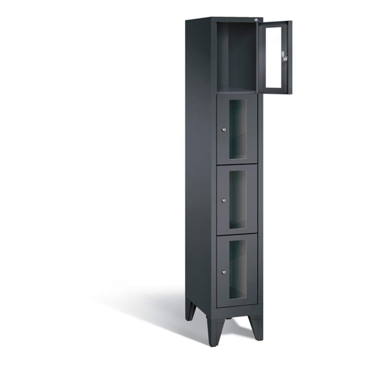 Stahl-Fächerschrank Classic, 4 Abteile mit 5 Fächern, Abteilbreite 300 mm, Korpus aus stabiler Stahlkonstruktion mit hochwertiger Einbrennbeschichtung für hohe UV- und Korrosionsbeständigkeit, auf 150 mm hohen Füßen aus Kunststoff für erweiterten Korrosionsschutz, 20 Zylinderschlösser mit je 2 Schlüsseln, Schließkreis bis 1000 verschiedene Schließungen, 1 Türen mit Sichtfenster aus Acrylglas für direkten Einblick, Türaufhängung in Drehbolzen mit Öffnungswinkel von ca. 110 Grad, inkl.... (mehr)? Papersmart hilft Ihnen, den besten Anbieter für Ihren gesamten Warenkorb zu ermitteln.