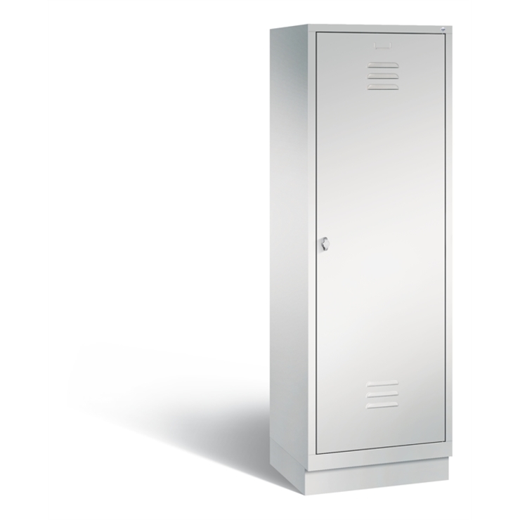 Garderobenschrank Serie Classic mit 100 mm hohem Sockel, Höhe 1800 mm, lichtgrau/lichtblau • Stabile Stahlblechkonstruktion Erhöhter Korrosionsschutz durch Schrankfüße aus Kunststoff. • Klassische Schwarz/weiß-Trennung Getrennte Aufbewahrung von Berufs-/ Privatkleidung. • Praktische Türen Paarweise zueinanderschlagend, mit Anschlagsdämpfer. In Drehbolzen gelagert mit senkrechter Kastenverstärkung. Mit Drehriegelverschluss zur Verwendung eines Vorhängeschlosses, Belüftungskontept CBL,... (mehr)? Papersmart hilft Ihnen, den besten Anbieter für Ihren gesamten Warenkorb zu ermitteln.