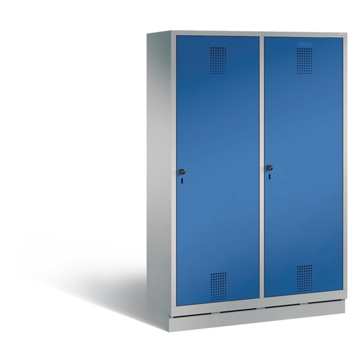 Stahl-Garderobenschrank Evolo, als Straßen- und Berufskleidungsschrank, 2 Abteile für 1 Person, Abteilbreite 300 mm, 1 Tür über 2 Abteile, rechts angeschlagen, Korpus aus stabiler Stahlkonstruktion mit hochwertiger Einbrennbeschichtung für hohe UV- und Korrosionsbeständigkeit, innen je Abteil 1 Ablageboden, darunter 1 stabile Garderobenstange aus Ovalprofil mit 3 verdrehsicheren Schiebehaken, Schrankboden hinten mit großflächigem Luftdurchlass, auf 100 mm hohem Sockel, mit... (mehr)? Papersmart hilft Ihnen, den besten Anbieter für Ihren gesamten Warenkorb zu ermitteln.