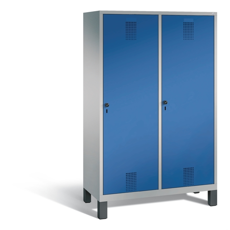 Stahl-Garderobenschrank Evolo, als Straßen- und Berufskleidungsschrank, 2 Abteile für 1 Person, Abteilbreite 300 mm, Türen zueinanderschlagend für gemeinsamen Verschluss, Korpus aus stabiler Stahlkonstruktion mit hochwertiger Einbrennbeschichtung für hohe UV- und Korrosionsbeständigkeit, innen 1 durchgehender Ablageboden, darunter je Abteil 1 stabile Garderobenstange aus Ovalprofil mit 3 verdrehsicheren Schiebehaken, Schrankboden hinten mit großflächigem Luftdurchlass für optimale... (mehr)? Papersmart hilft Ihnen, den besten Anbieter für Ihren gesamten Warenkorb zu ermitteln.