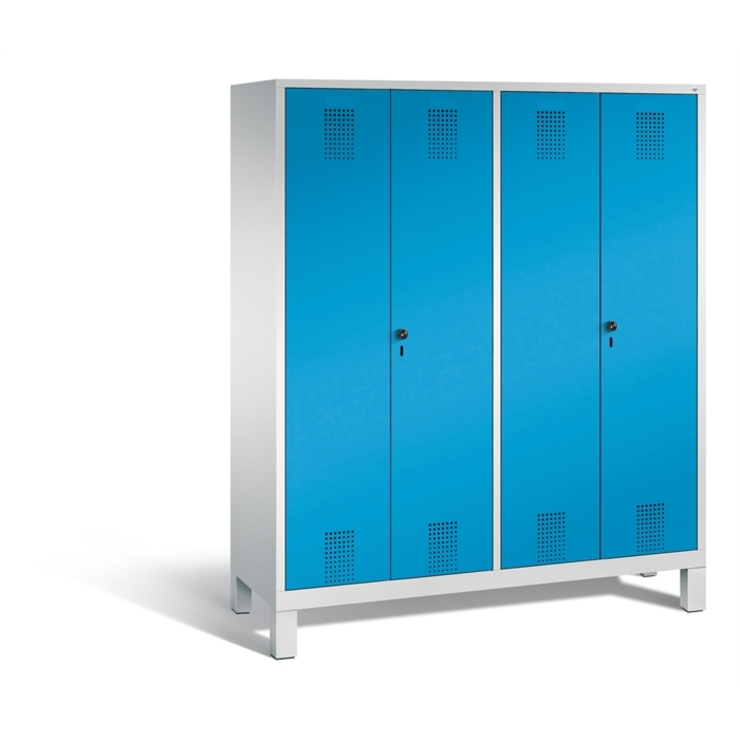 Stahl-Garderobenschrank Classic, auf untergebauter Sitzbank, Gestell aus stabilem Vierkant-Stahlrohr 30 x 30 mm, mit verstellbaren Bodengleitern für einfachen Niveauausgleich, 2 Abteile, Abteilbreite 400 mm, z-förmig unterteilt für 4 Personen, Korpus aus stabiler Stahlkonstruktion mit hochwertiger Einbrennbeschichtung für hohe UV- und Korrosionsbeständigkeit, innen komfortable Hängemöglichkeit langer Kleidungsstücke trotz geringem Platzangebot, je Fach 1 stabile Garderobenstange aus... (mehr)? Papersmart hilft Ihnen, den besten Anbieter für Ihren gesamten Warenkorb zu ermitteln.