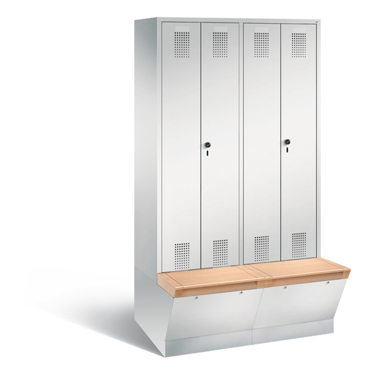 Stahl-Garderobenschrank Classic, 2 Abteile mit 4 Fächern, Abteilbreite 400 mm, Korpus aus stabiler Stahlkonstruktion mit hochwertiger Einbrennbeschichtung für hohe UV- und Korrosionsbeständigkeit, auf 150 mm hohen Füßen aus Kunststoff für erweiterten Korrosionsschutz, 8 Zylinderschlösser mit je 2 Schlüsseln, Schließkreis bis 1000 verschiedene Schließungen, Türen mit Anschlagsdämpfer, Türaufhängung in Drehbolzen, Maße (H x B x T): 1850 x 810 x 500 mm, Korpus: RAL 7035 Lichtgrau, Türen... (mehr)? Papersmart hilft Ihnen, den besten Anbieter für Ihren gesamten Warenkorb zu ermitteln.