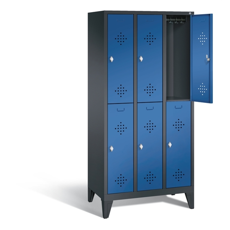 Doppelstöckiger Stahl-Garderobenschrank Evolo, 1 Abteil mit 2 Fächern, Abteilbreite 300 mm, Korpus aus stabiler Stahlkonstruktion mit hochwertiger Einbrennbeschichtung für hohe UV- und Korrosionsbeständigkeit, innen je Fach 1 Ablageboden, darunter 1 stabile Garderobenstange aus Ovalprofil mit 3 verdrehsicheren Schiebehaken, auf untergebauter Sitzbank, Gestell aus stabilem Vierkant-Stahlrohr 30 x 30 mm, mit verstellbaren Bodengleitern für einfachen Niveauausgleich, 2 Ergonomische... (mehr)? Papersmart hilft Ihnen, den besten Anbieter für Ihren gesamten Warenkorb zu ermitteln.