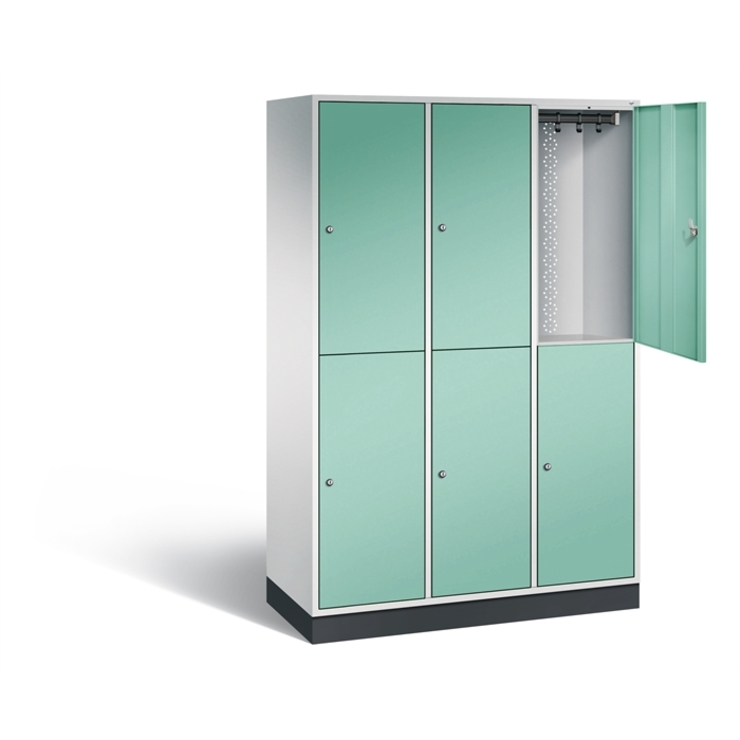 Doppelstöckiger Stahl-Garderobenschrank Classic, 3 Abteile mit 2 Fächern, Abteilbreite 400 mm, Korpus aus stabiler Stahlkonstruktion mit hochwertiger Einbrennbeschichtung für hohe UV- und Korrosionsbeständigkeit, innen je Fach 1 stabile Garderobenstange aus Ovalprofil mit 3 verdrehsicheren Schiebehaken, auf 100 mm hohem Sockel, mit Kunststoffgleitern als praktischer Schrank- und Fußbodenschutz, vorne zurückgesetzt, 6 Drehriegel für Vorhängeschlösser, 6 Türen mit Anschlagsdämpfer und... (mehr)? Papersmart hilft Ihnen, den besten Anbieter für Ihren gesamten Warenkorb zu ermitteln.