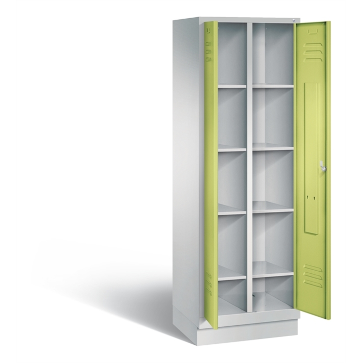 Stahl-Fächerschrank Classic, 2 Abteile mit 5 Fächern, Abteilbreite 300 mm, Korpus aus stabiler Stahlkonstruktion mit hochwertiger Einbrennbeschichtung für hohe UV- und Korrosionsbeständigkeit, auf 150 mm hohen Füßen aus Kunststoff für erweiterten Korrosionsschutz, 10 Zylinderschlösser mit je 2 Schlüsseln, Schließkreis bis 1000 verschiedene Schließungen, 1 Türen mit Sichtfenster aus Acrylglas für direkten Einblick, Türaufhängung in Drehbolzen mit Öffnungswinkel von ca. 110 Grad, inkl.... (mehr)? Papersmart hilft Ihnen, den besten Anbieter für Ihren gesamten Warenkorb zu ermitteln.
