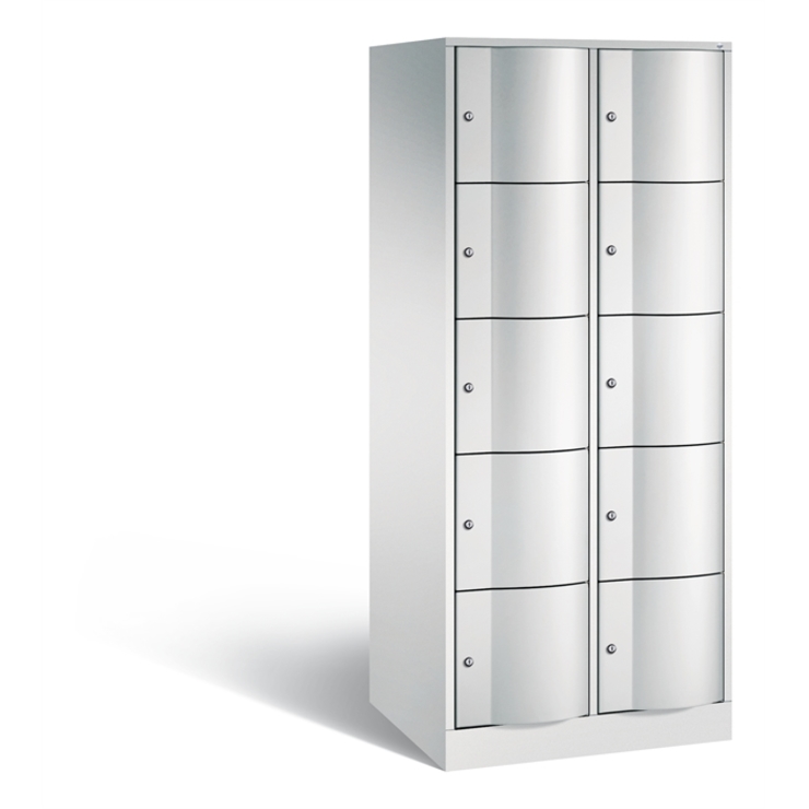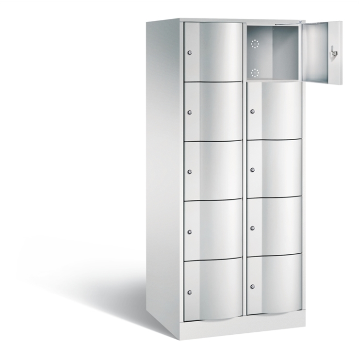 Stahl-Wäsche-Ausgabeschrank Evolo, als Wäsche-Sammelschrank, 1 Abteil mit 10 Fächern, Korpus aus stabiler Stahlkonstruktion mit hochwertiger Einbrennbeschichtung für hohe UV- und Korrosionsbeständigkeit, mit 10 einzel verschließbaren Fachtüren und Zentraltür mit der alle Gefache zentral geöffnet werden (z.B. zum Befüllen), Schrankboden und Rückwand hinten mit Lüftungsöffnungen für optimale Luftzirkulation, auf 150 mm hohen Füßen aus Kunststoff, mit integrierter Niveauregulierung und... (mehr)? Papersmart hilft Ihnen, den besten Anbieter für Ihren gesamten Warenkorb zu ermitteln.