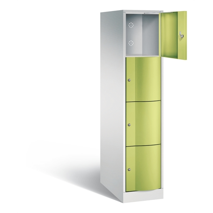 Stahl-Schließfachschrank Evolo, als Laptopschrank, 2 Abteile mit je 10 Fächern, Abteilbreite 400 mm, Korpus aus stabiler Stahlkonstruktion mit hochwertiger Einbrennbeschichtung für hohe UV- und Korrosionsbeständigkeit, auf 150 mm hohen Füßen aus Kunststoff für erweiterten Korrosionsschutz, mit integrierter Niveauregulierung und Schutzhülsen zur stilvollen Abdeckung der Verstellschrauben, bequem von innen und außen verstellbar, Belüftungsöffnungen in der Rückwand, 20 Tür mit... (mehr)? Papersmart hilft Ihnen, den besten Anbieter für Ihren gesamten Warenkorb zu ermitteln.