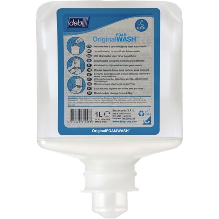 Geeignet für häufige Anwendung. Schnell abwaschbar, enthält Stoffe zur besseren Rückfeuchtung und Pflege der Haut. Ohne Farbstoffe. Für deb® Seifenspender Proline InstantFOAM. Bezeichnung: Original FOAM WASH™ Nachfüllung: Nachfüllung Darreichungsform: Schaum Verpackung: Patrone Unterverpackung: 6 x 1 l