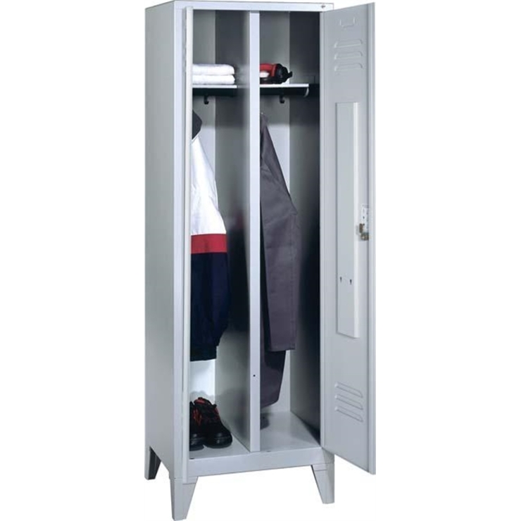 Stahl-Garderobenschrank Classic, 2 Abteile, Abteilbreite 400 mm, Korpus aus stabiler Stahlkonstruktion mit hochwertiger Einbrennbeschichtung für hohe UV- und Korrosionsbeständigkeit, innen je Abteil 1 Ablageboden, darunter 1 stabile Garderobenstange aus Ovalprofil mit 3 verdrehsicheren Schiebehaken, Schrankboden hinten mit Lüftungsöffnungen für optimale Luftzirkulation, auf 150 mm hohen Füßen aus Kunststoff für erweiterten Korrosionsschutz, 2 Drehriegel für Vorhängeschlösser, Türen mit... (mehr)? Papersmart hilft Ihnen, den besten Anbieter für Ihren gesamten Warenkorb zu ermitteln.