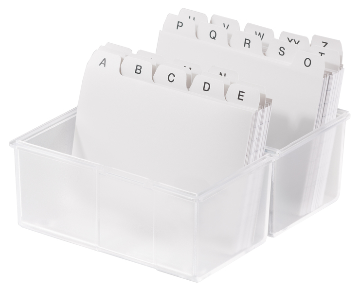 HAN Karteibox DIN A6 quer, max 400 Karten m. Stahlscharnier, transluzent-klar