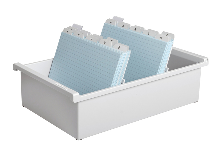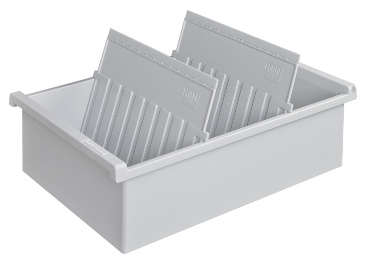 HAN Karteitrog A5 quer, für 1300 Karten, 2 Stützplatten mit Sichtreitern, lichtgrau