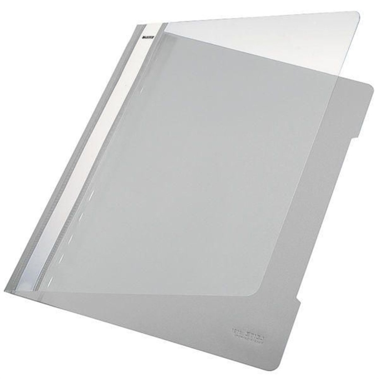 Leitz Standard Plastik-Hefter · Hochwertiger Schnellhefter aus langlebiger, sehr reißfester Kunststoff-Folie für einen optimalen Schutz der Unterlagen. · PVC-Hartfolie. Für Format A4. · Transparenter Vorderdeckel · Mit Heftmechanik für Standard-Lochung (80 mm) · Langes Beschriftungsfeld mit Daumenausschnitt zur leichteren Entnahme · Greifausschnitt am Rückdeckel zum leichteren Öffnen · Ohne Falz · Für bis zu 250 Blatt (80 g / m²) ·