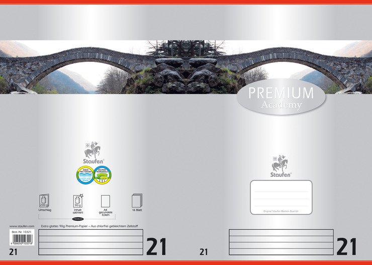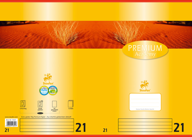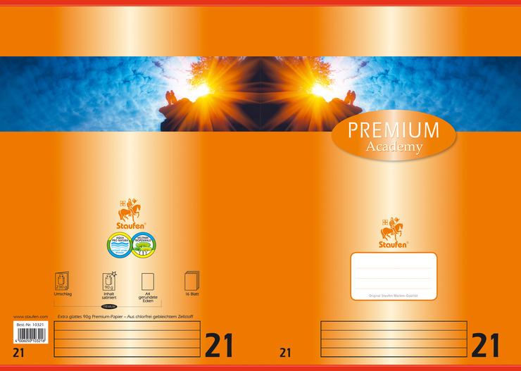Staufen Schulheft Premium, A4, 16 Bl., Lin.21, Liniert