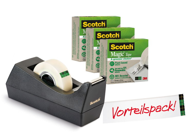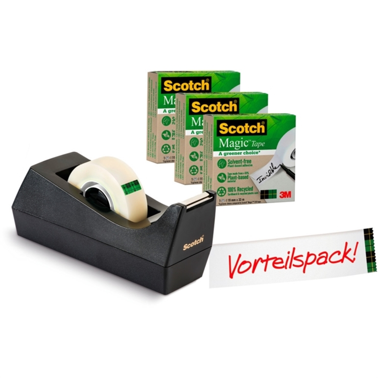 TischabrollerScotch®, schwarz, inklusive 3 Rollen Magic™ Klebeband 19mmx33m